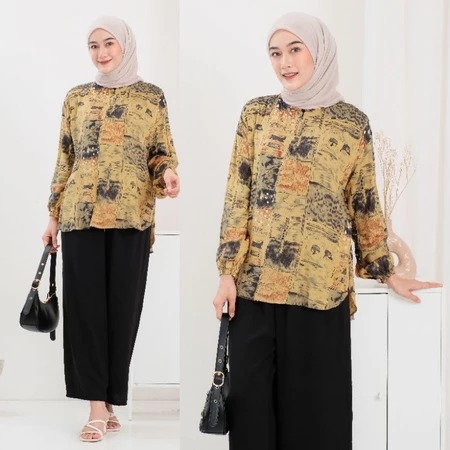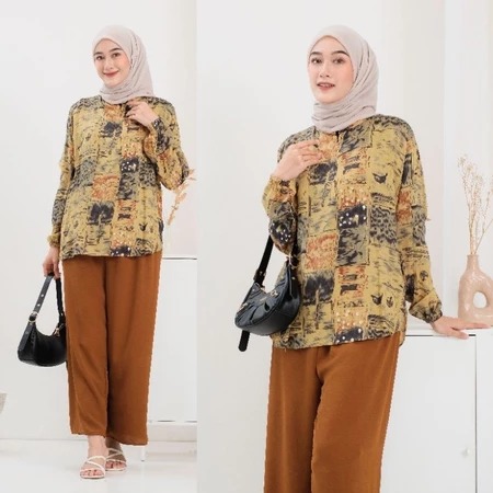 Setelan cewek - one set wanita - baju cewek - Rayon Set Motif / Setelan Wanita Rayon Mix Crinkle Busui Terbaru