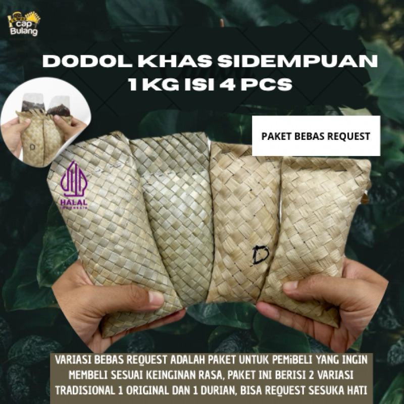 PAKET 1 KILO DODOL KHAS SIDEMPUAN/ ALAME SIDEMPUAN/TAPANULI SELATAN (HARGA 4 PCS, UNTUK ORIGINAL DAN DURIAN PAKAI LAPIS