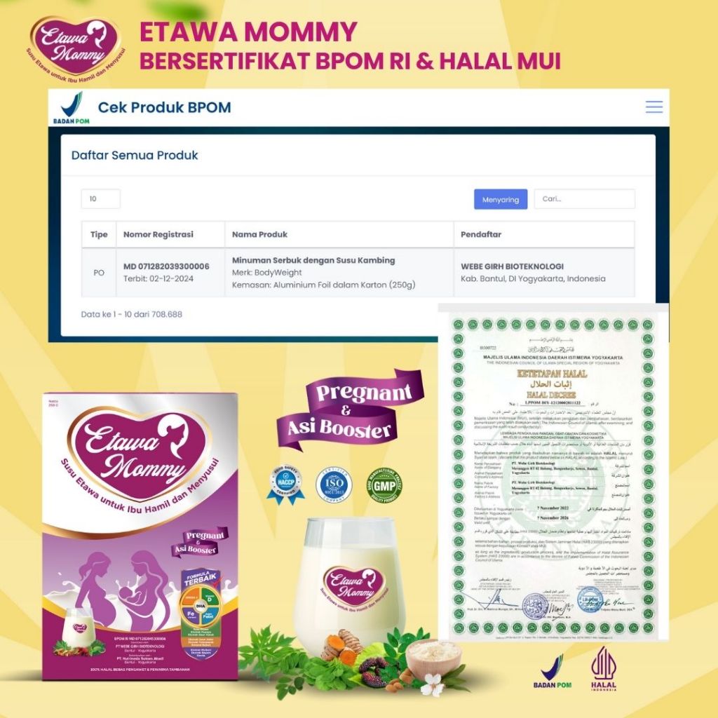 Etawa Mommy Susu Hamil & Pelancar ASI - Booster ASI Plus DHA, Asam Folat, Omega 3 dan Herbal 2 Box