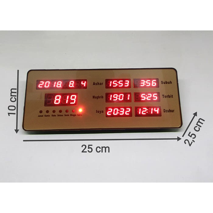 Sonifer Jam Sholat 5 waktu Jam Adzan Iqomah Otomatis Adzan Clock 25 x 10 cm FREE CUSTOM NAMA