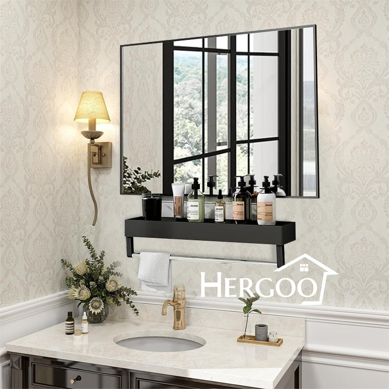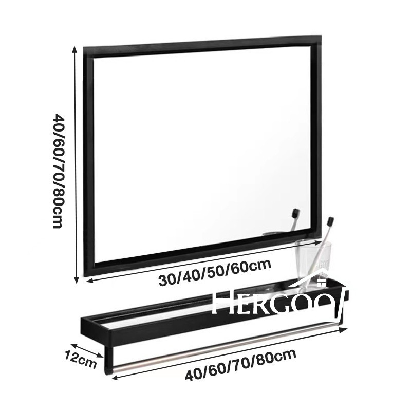 [Star] Cermin Gantung Dinding 4060cm Cermin Kamar Mandi Persegi Panjang Dengan Rak Handuk Rak Cermin Terpasang Di Dinding Cerm