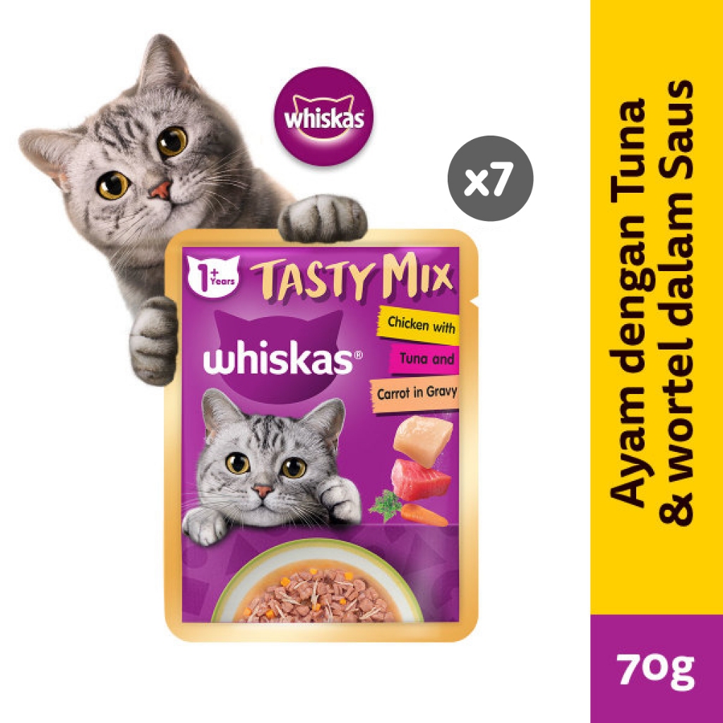 WHISKASTastyMixGravyMakananKucingBasahDewasaPilihRasa70gr(7-Pack)