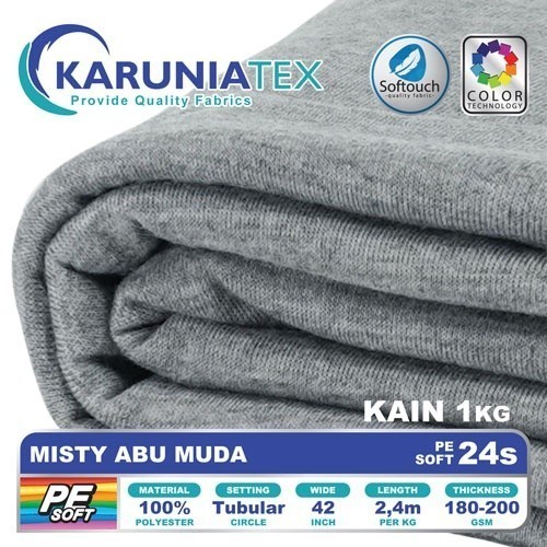 Kain Kaos PE Soft 24s Kiloan | Misty Abu Muda | Karunia Textile