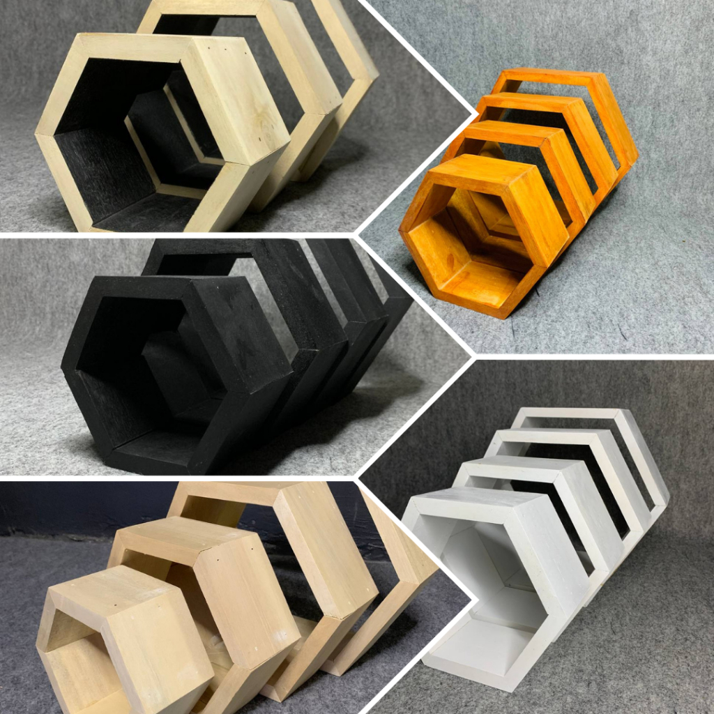 hiasan dinding kamar esthetic rak hexagonal 1 set ambalan ruangan tamu hexsagonal Wood tanpa bor