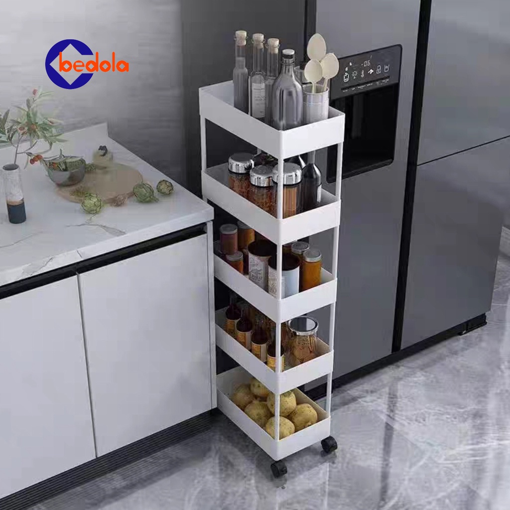 Square rak dapur putih rak kamar mandi rak troli rak susun serbaguna rak dorong 5 tingkat dengan roda