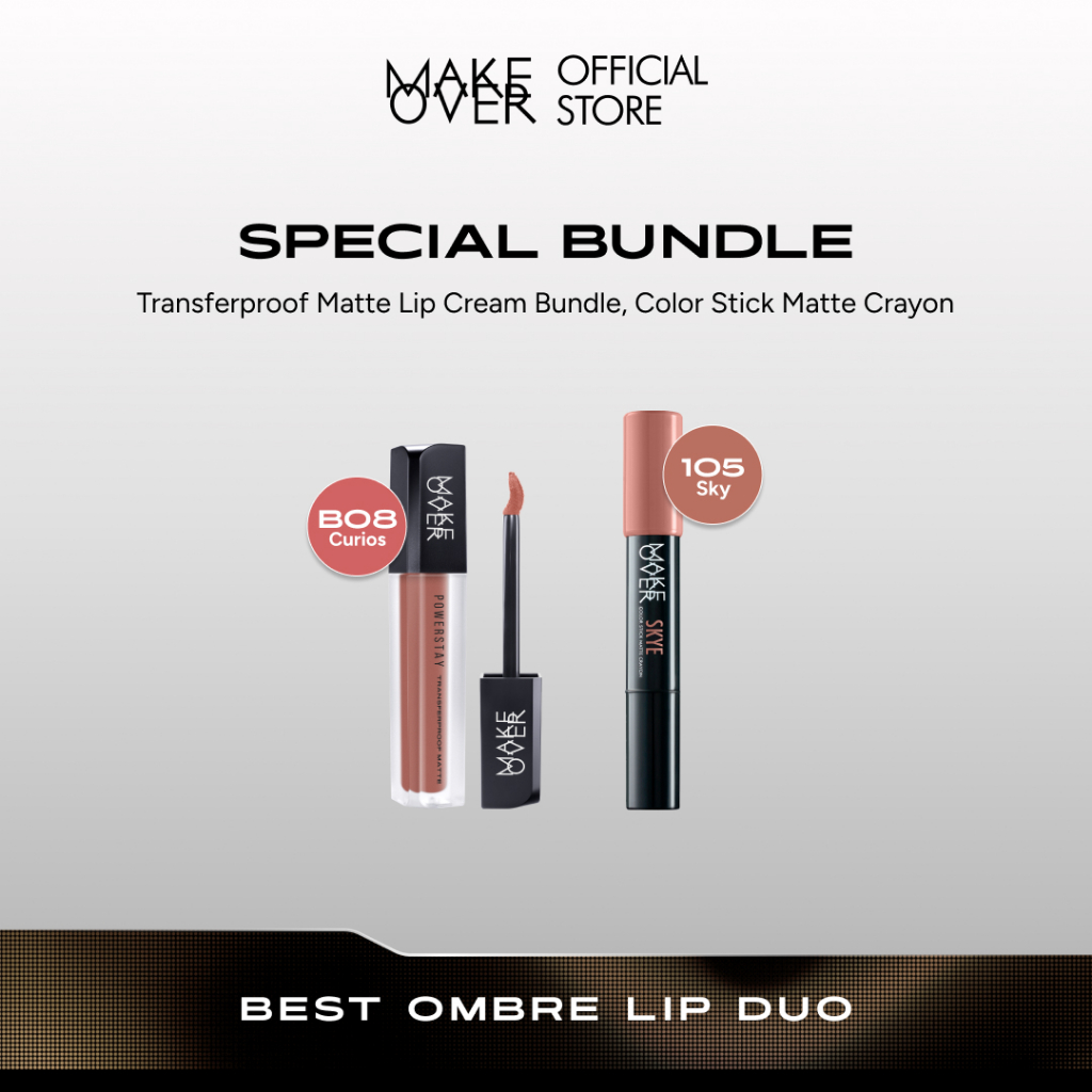 MAKE OVER Glam Lip Statement | Matte Bundle - Transferproof Matte Lip Cream Bundle + Color Stick Matte Crayon - Paket Li