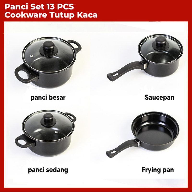 Cookware Panci Set 13 IN 1 Stainless Steel Wajan Penggorengan Spatula Set Isi 13Pcs 1 Set Frypan Saucepan