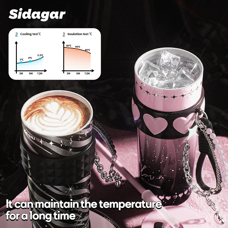Sidagar 710ML 316 Stainless Steel Cold and hot Thermos Insulated Vacuum Water Flask Portable Water Bottle with Straw