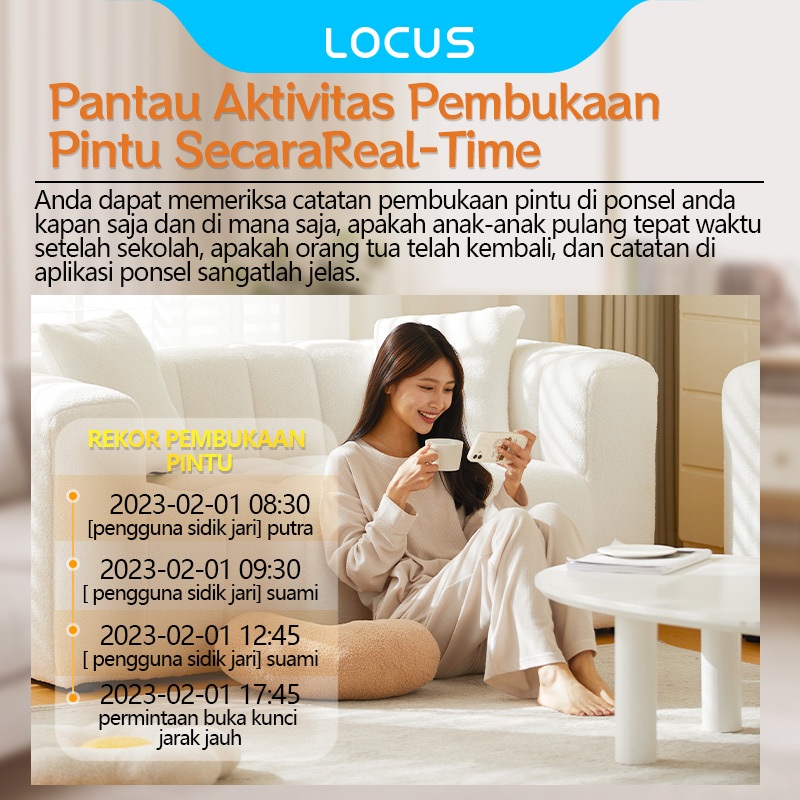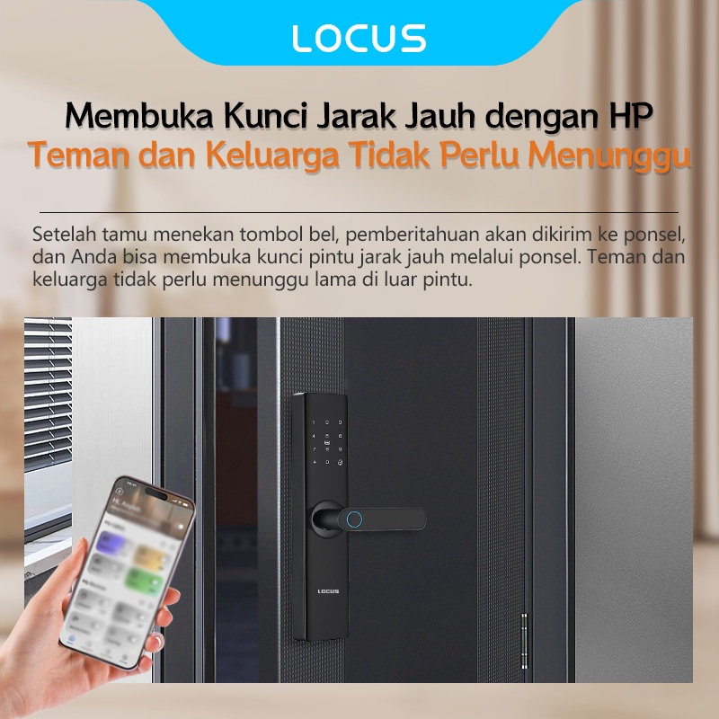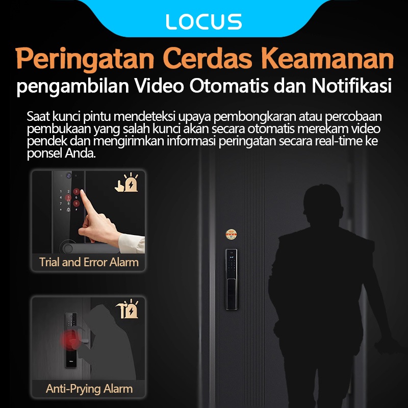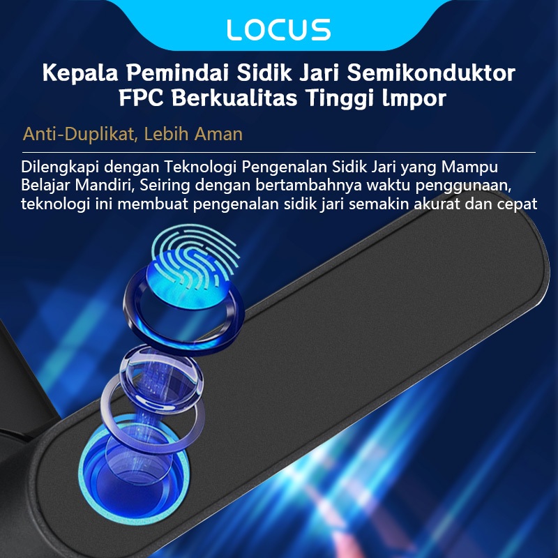 Locus L8 Wifi Smart Door Lock dengan Sidik Jari, Support Tuya APP Long-Distance Unlocking, Fingerprint/Password/Tuya App