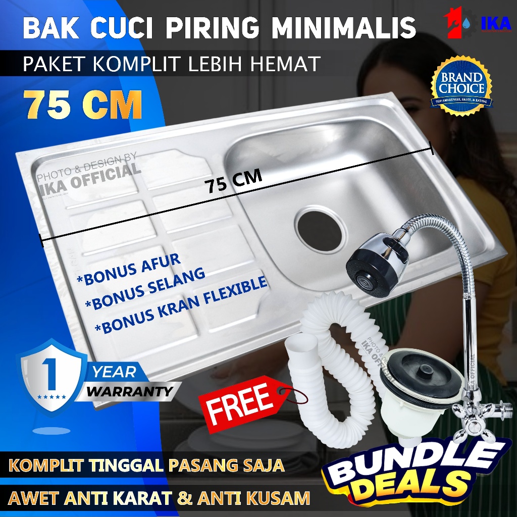 STAINLESS Paket Lengkap Kitchen Sink Paket Kran kitchen sink minimalis Bak/Wastafel Cuci Piring Stainless 50cm 75cm & 96