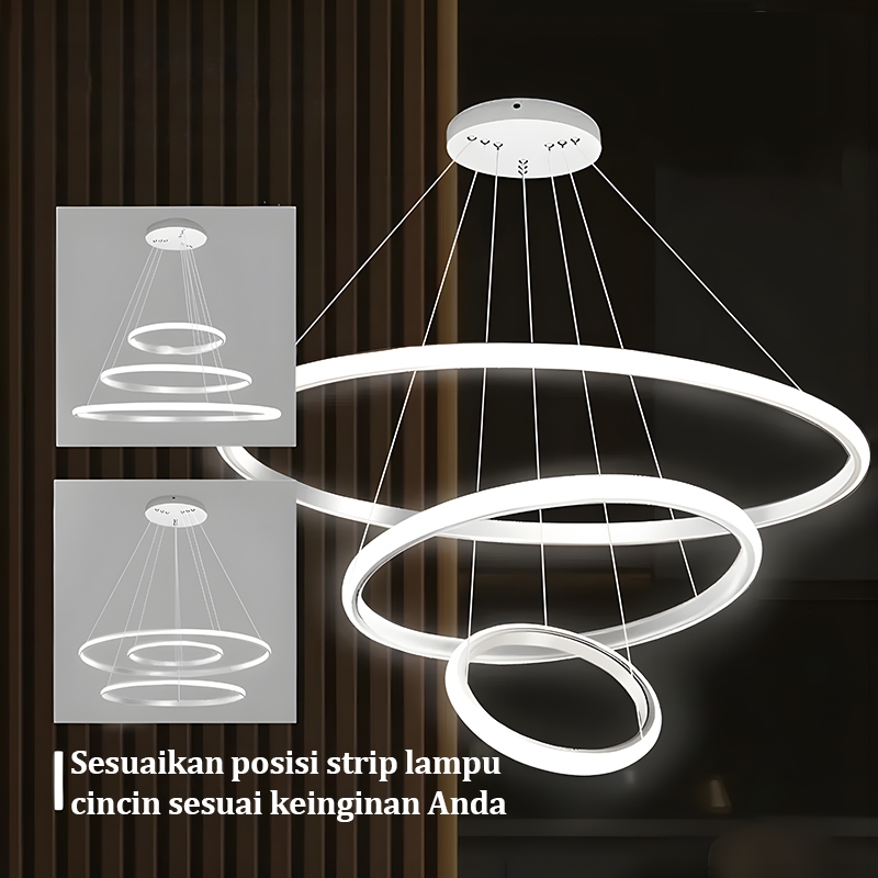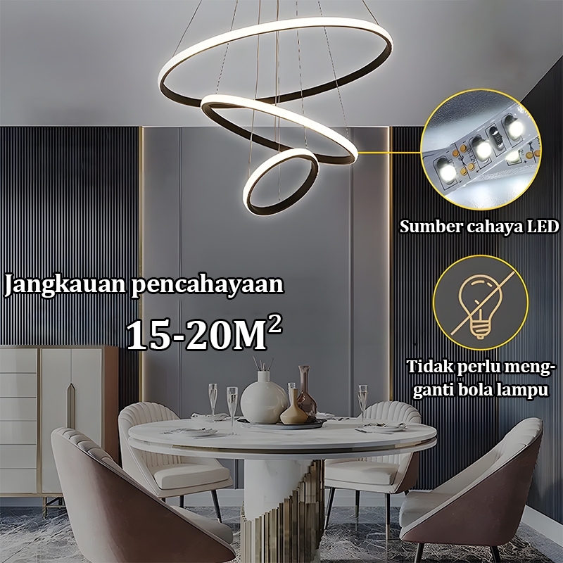 [Star] Lampu Gantung Ruang Tamu Minimalis Modern LED 3 Ring Lampu Gantung 3 Warna Lampu Hias Ruang Tamu
