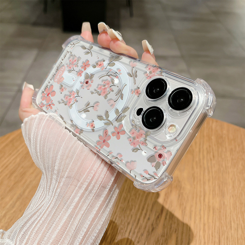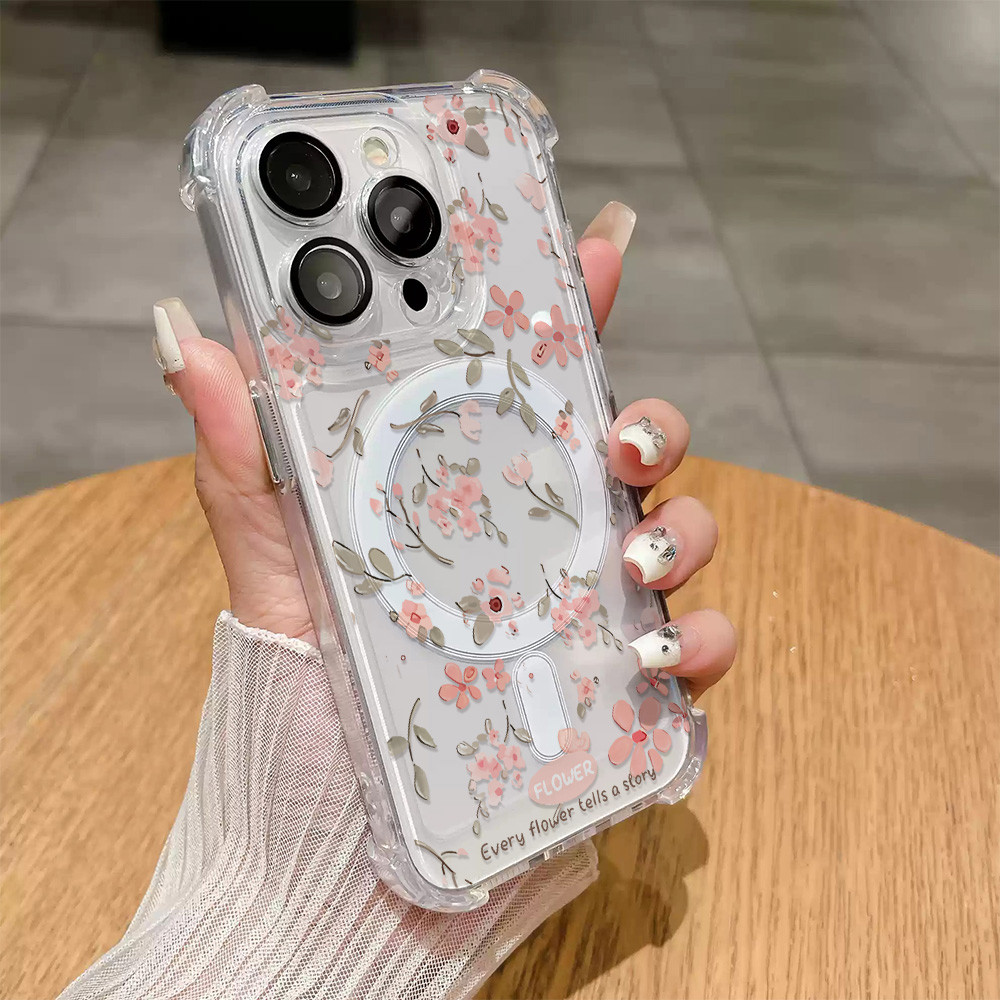 MAXCOBBER Beautiful flowers Clear Magnetic Case for Case for iPhone 13 14 15 16 7 8 XR X 11 12 Plus Pro Max Softcase