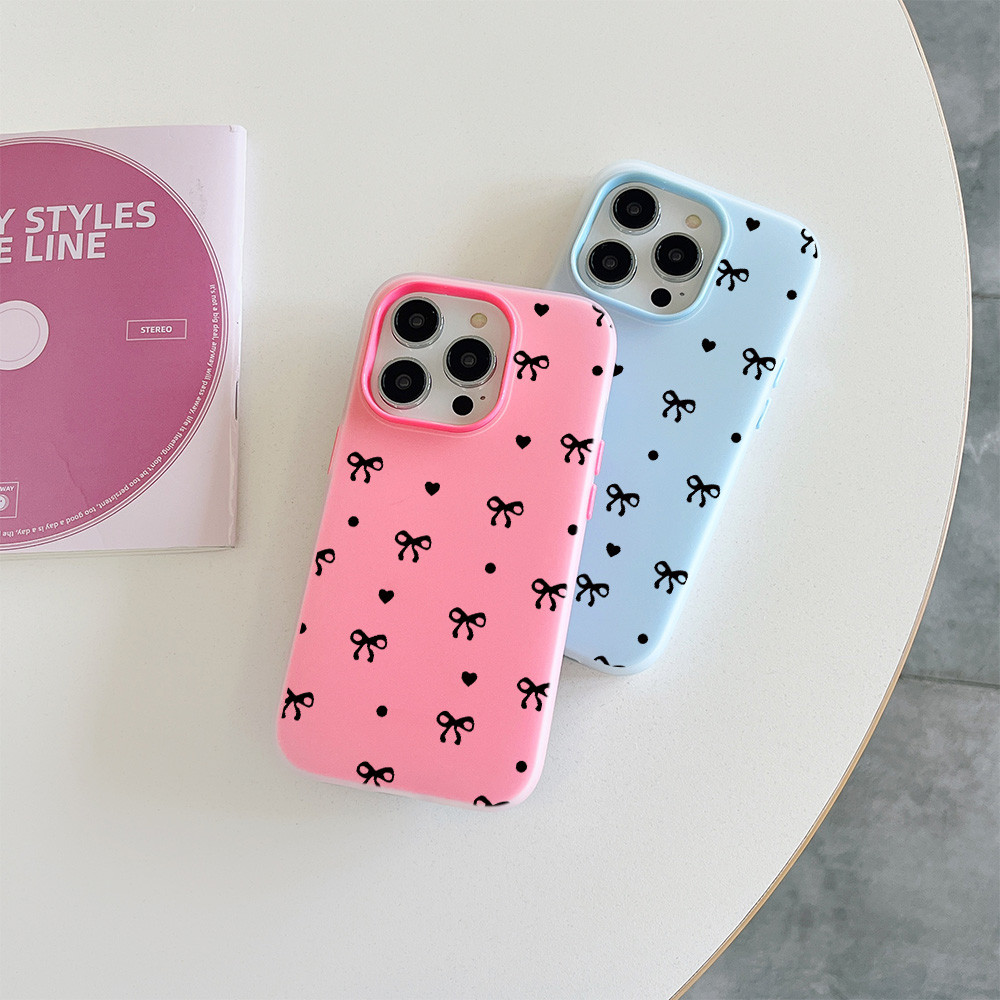 MAXCOBBER Beautiful bow black heart Jelly Color 2 in 1 Case for iPhone 13 14+ 14 15 16 Plus Pro Max 7 8 Plus X XS XR