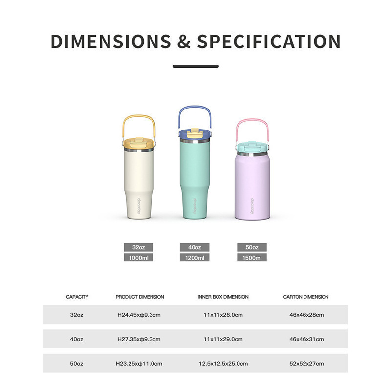 Dearday Tumbler Portable 304 Stainless 1000 ML Thermos Cup Vacuum Insulated Pink