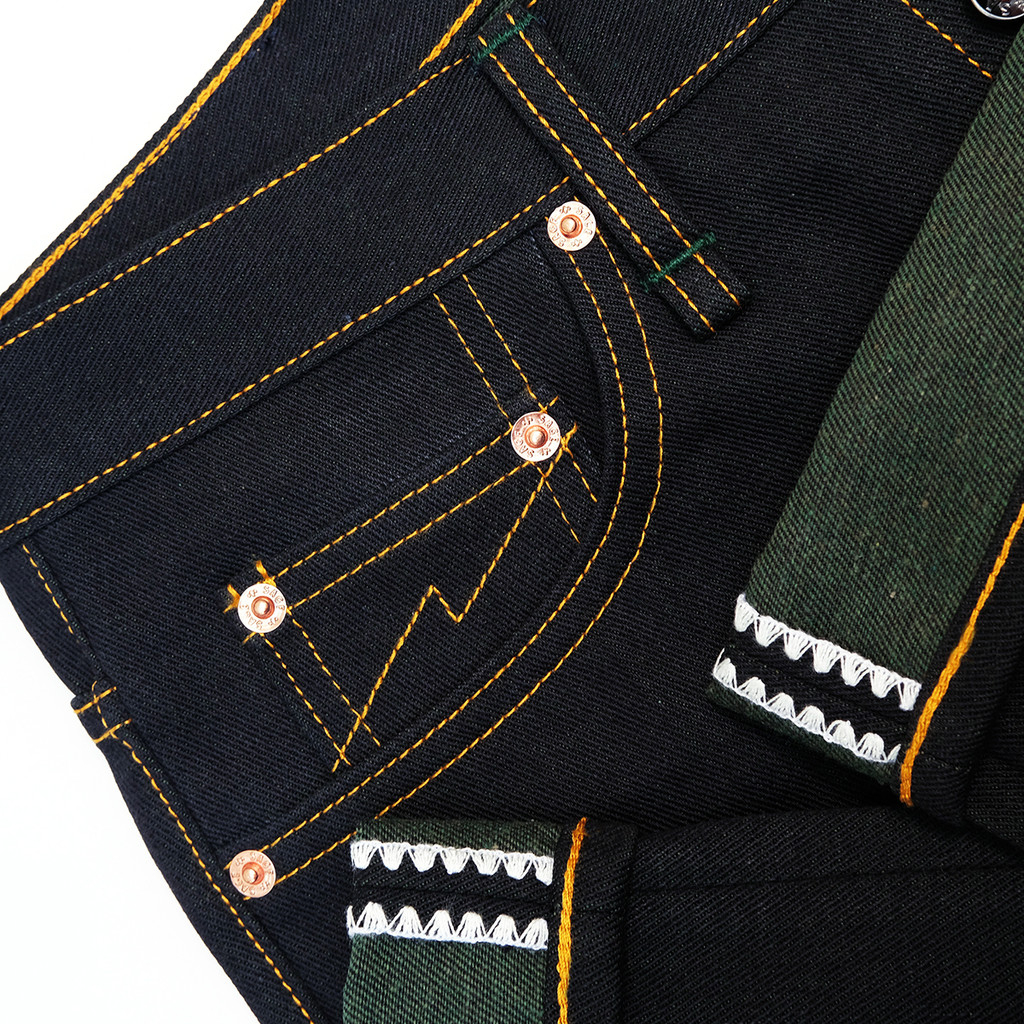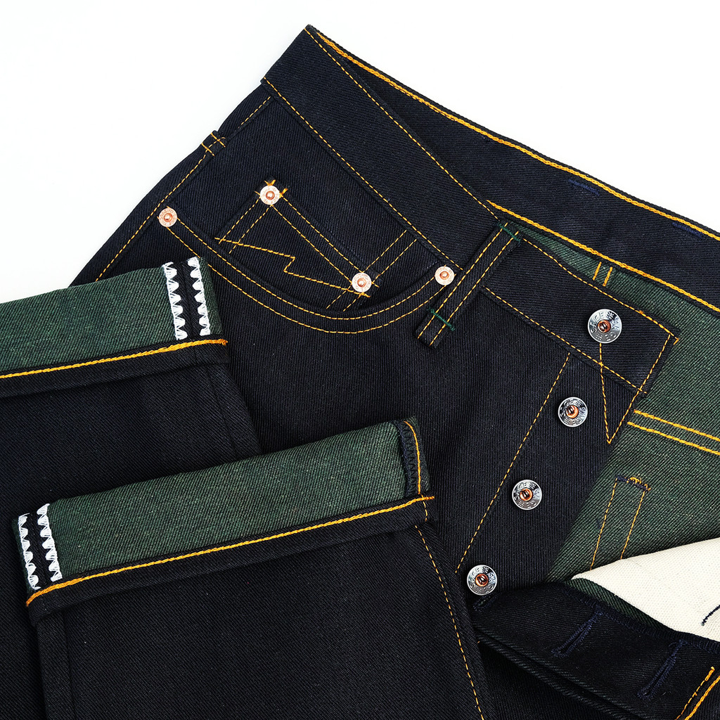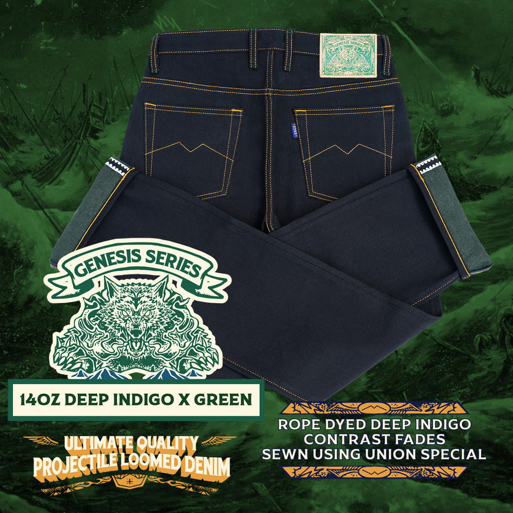Sage Denim Genesis Series : 14oz Deep Indigo x Green Weft Projectile Loomed Denim