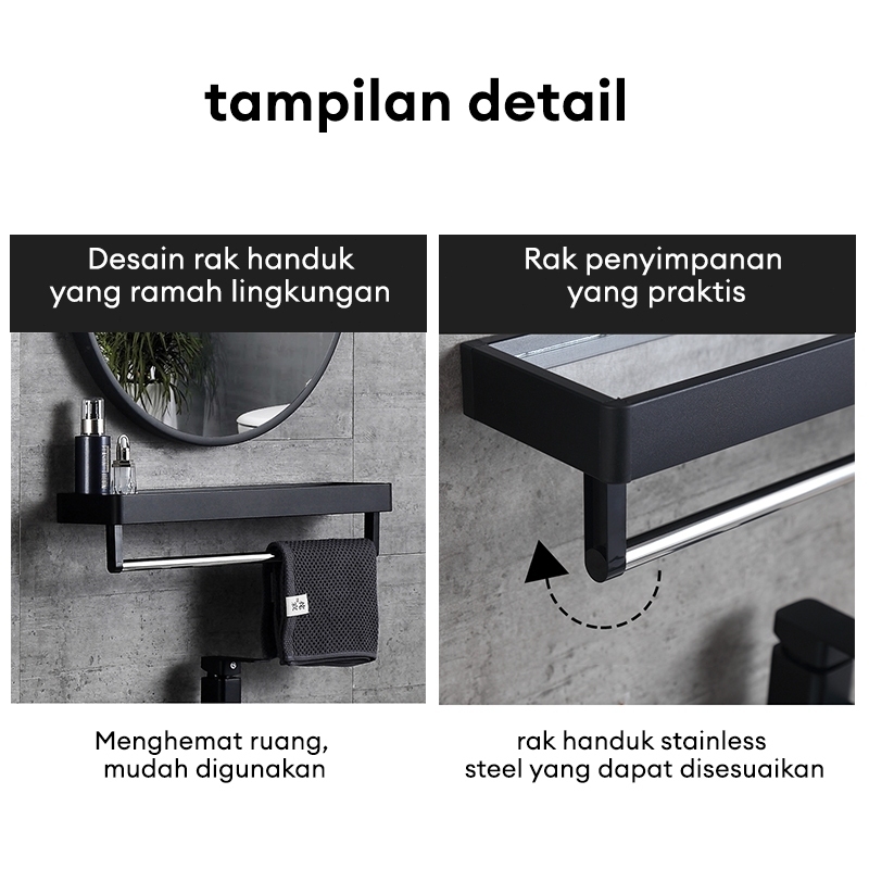 [Star] Cermin Gantung Dinding 30/40/50/60cm Cermin Kamar Mandi Dengan Rak Handuk Rak Cermin Terpasang Di Dinding Cermin Gantung