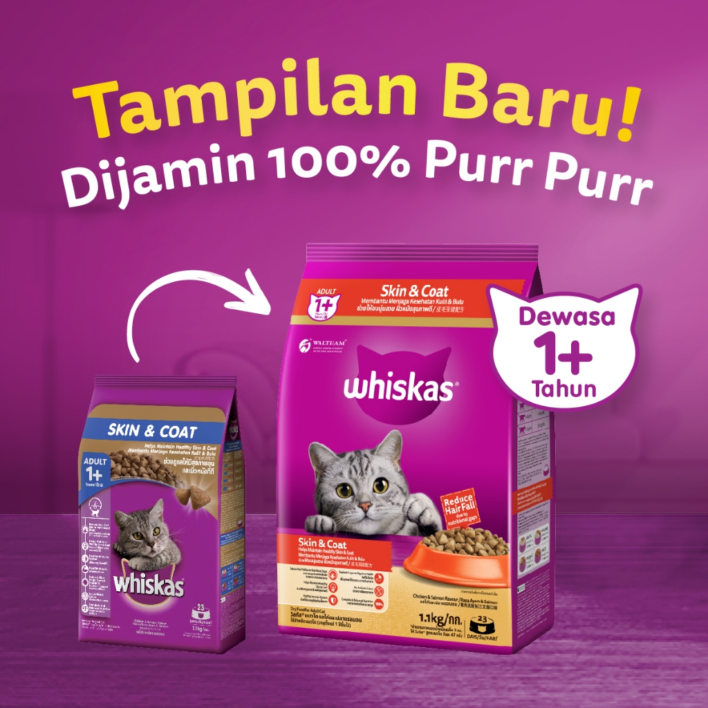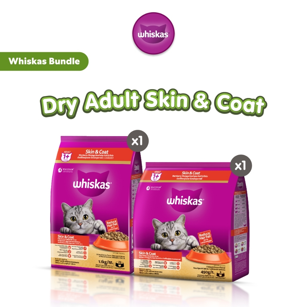 [SPESIALBUNDLE1.5KG]WhiskasMakananKeringSkin&Coat1.1kg+450gr
