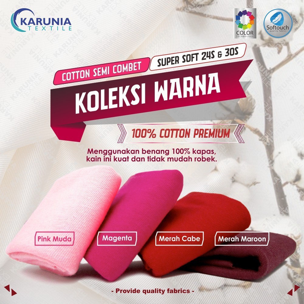 Kain Kaos Cotton Semi Combet 24s Kiloan | Merah Maroon | Karunia Textile
