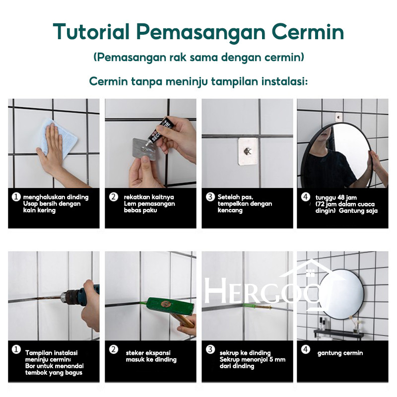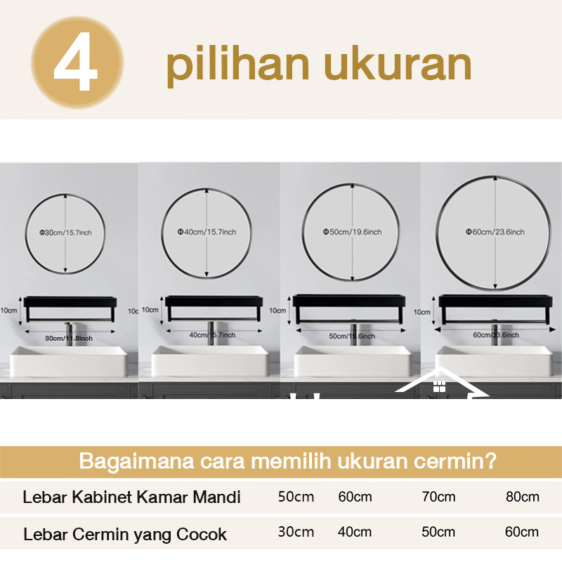 [Star] Cermin Kamar 50cm Mandi Cermin Bulat dengan Rak Bulat Rak Handuk Kamar Mandi Cermin Gantung