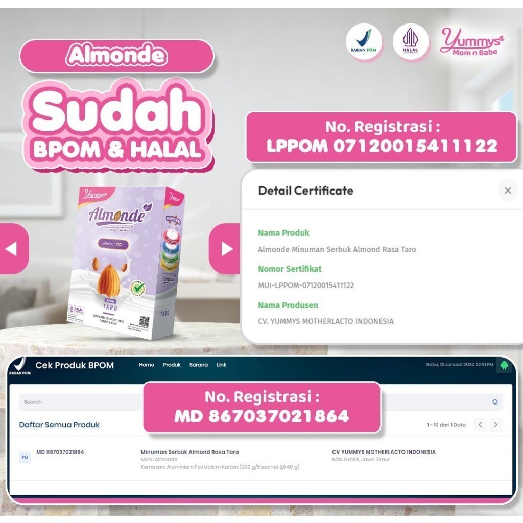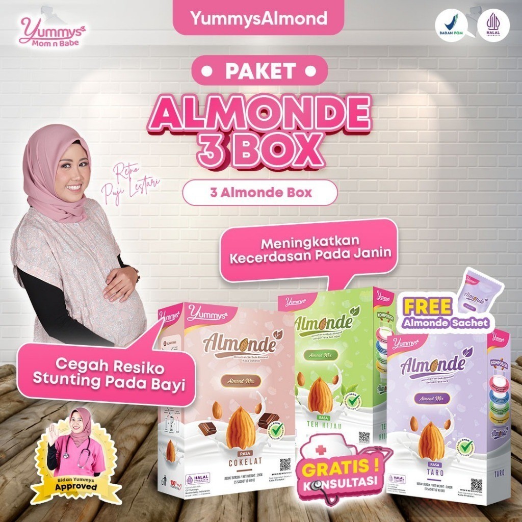 PAKET HEMAT, ISI 3 BOX Yummys Almond ALMONDE Susu Almond PROGRAM HAMIL Hingga TRIMESTER 1 & 2 | Memenuhi Nutrisi Gizi |