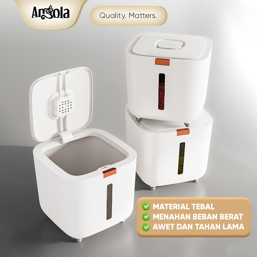 [GARANSI PECAH] ANGOLA Tempat Beras Anti Kutu dan Serangga 15KG E03/E04 Rice Bucket/Dispenser Beras