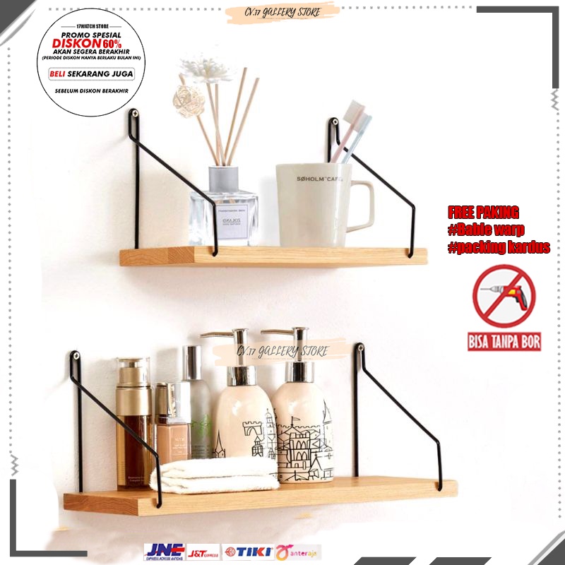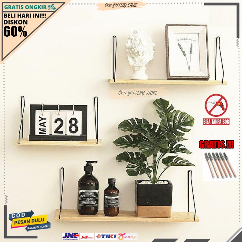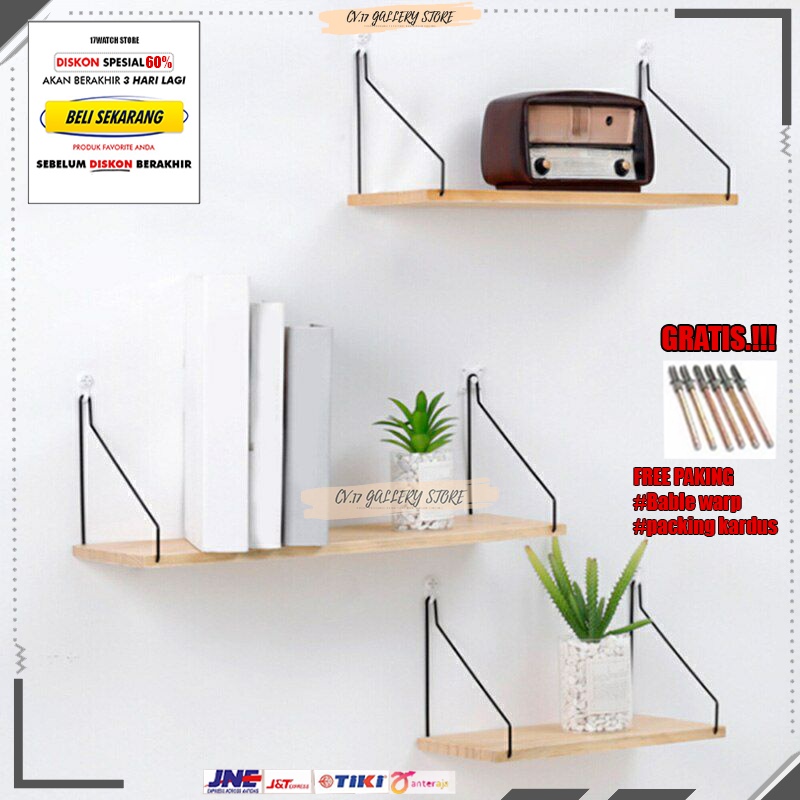 Papan Rak Dinding Gantung Kayu Jati Belanda Besi Tempat penyimpanan Hiasan Pajangan Tanaman Hias Bunga Buku Kosmetik mak