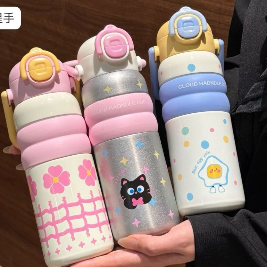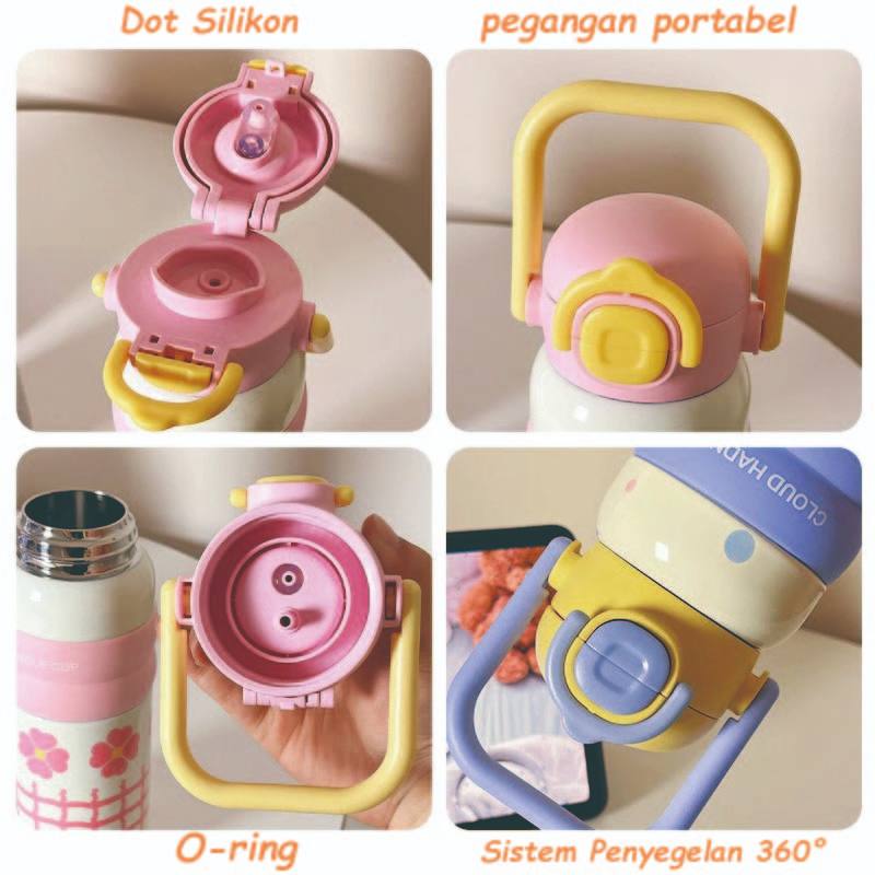 Animal Garden-Tumbler Bloom Bunny Handle 600ml Stainless SUS 316 / Botol Minum Bunny Flower Cat Lucu / Botol Minum Porta