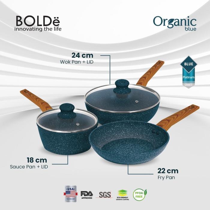 BOLDe ORGANIC BLUE COOKWARE SET 5pcs Panci Wajan Goreng