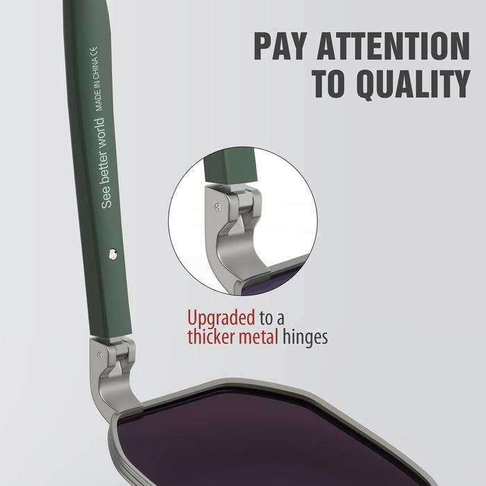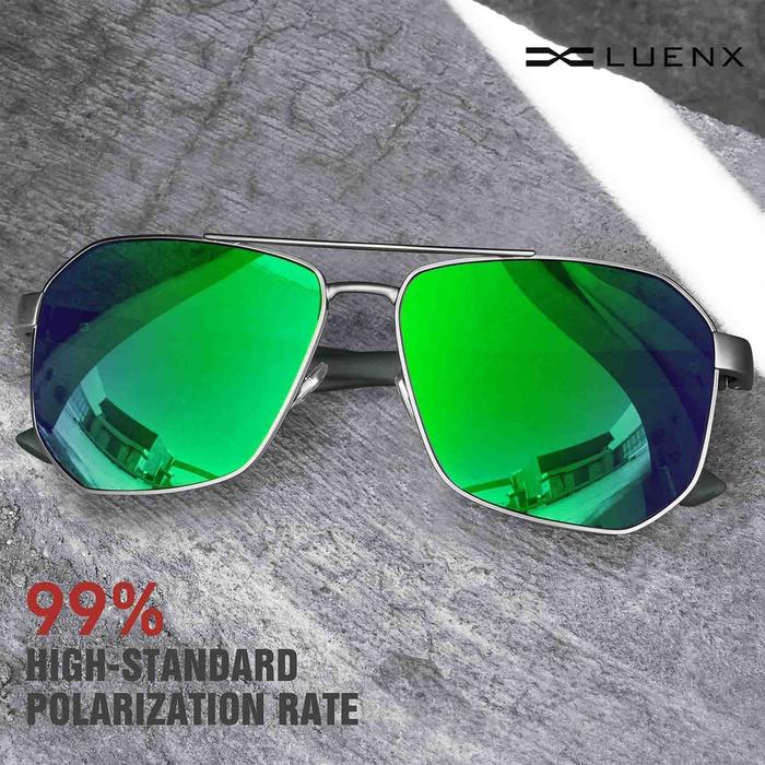 LUENX Kacamata Hitam Aviator Sunglasses for Men Square Polarized Polygon Lens - UV 400 Protection with Accessories 61MM