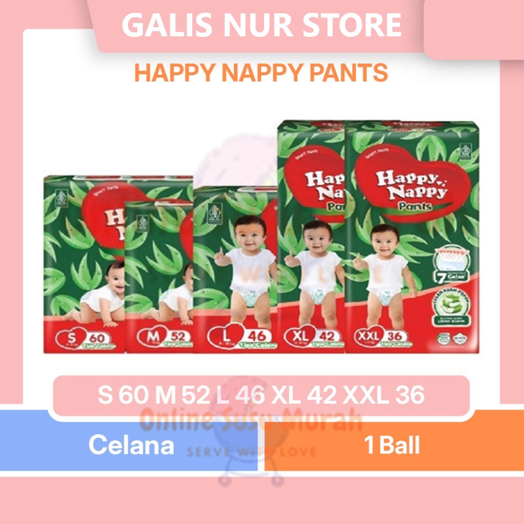 GRATIS ONGKIR 1 BALL PEMPES Happy Nappy UKURAN S 38 M 32 L 28 XL 26 XXL 24 1DUS ISI50 PEMPERS BABY HAPPY MAMYPOKO EXSTRA