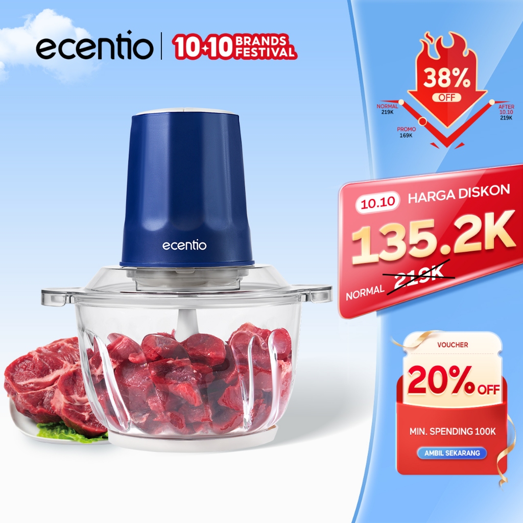 [Star] ecentio Food Processor Penggiling Daging Kaca 2L 6 Multifungsi Blender Kecepatan Meat Grinder Ganda Kapasitas Besar Foo