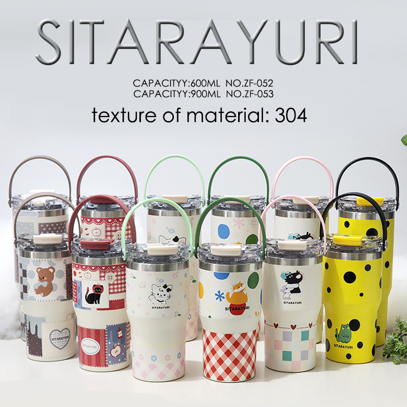 SITARAYURI Tumbler Cup Mobil 600ml & 900ml w/ Top Soft Handle Motif Cartoon Stainless Steel 304 dual drink Sedot Teguk