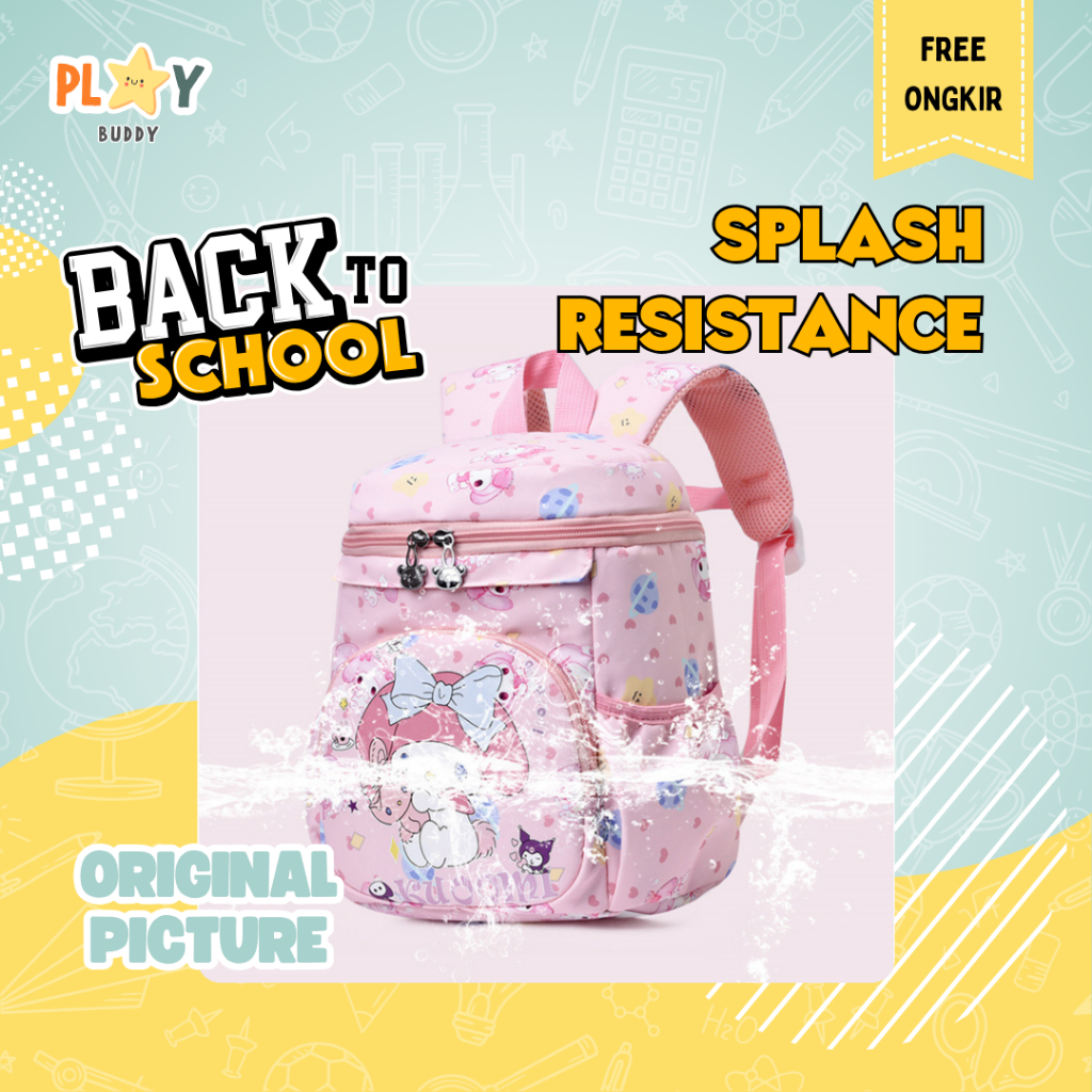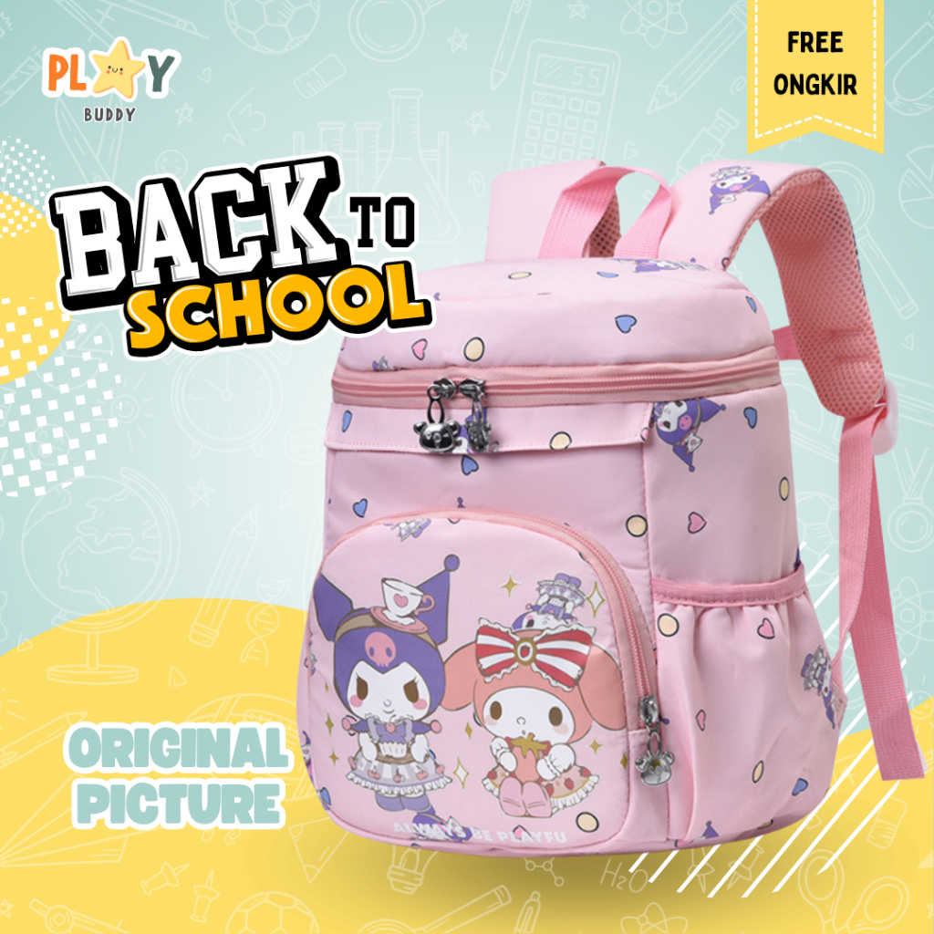 [GRATIS KEYCHAIN] Playbuddy Tas Sekolah Anak Perempuan Mimi | Ransel TK PAUD Backpack Melody Kuromi