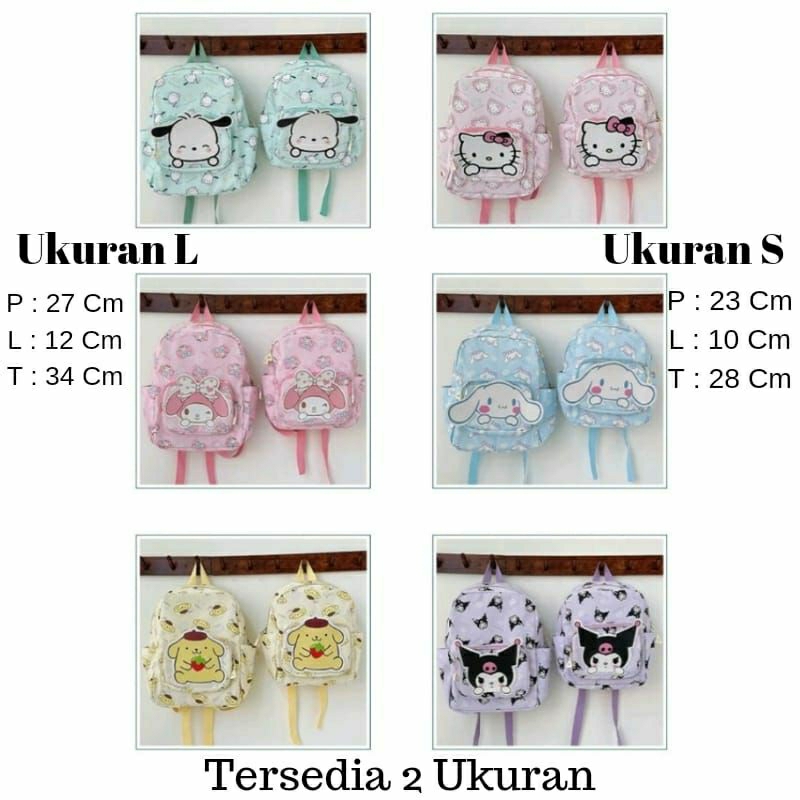 Tas Ransel Sanrio Backpack Tas Sekolah Anak TK PAUD Karakter Kuromi Melody Hello Kitty Cinnamoroll Import