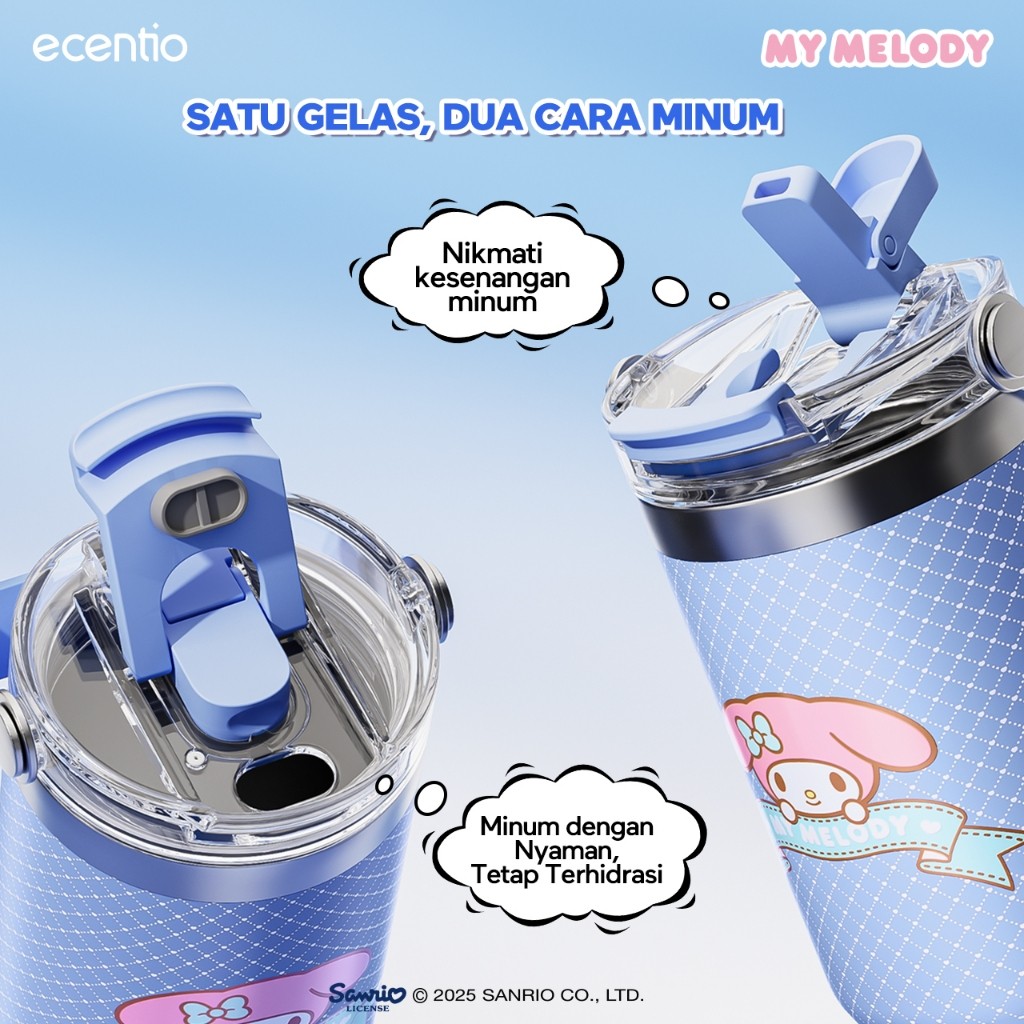 ecentio Tumbler Stainless 900ml Kuromi & My Melody Custom Tumblr Aesthetic Tahan Digin 24 jam Vacuum Insulated Tumbler e