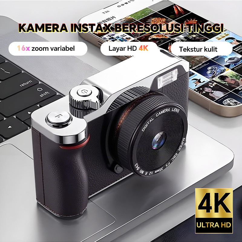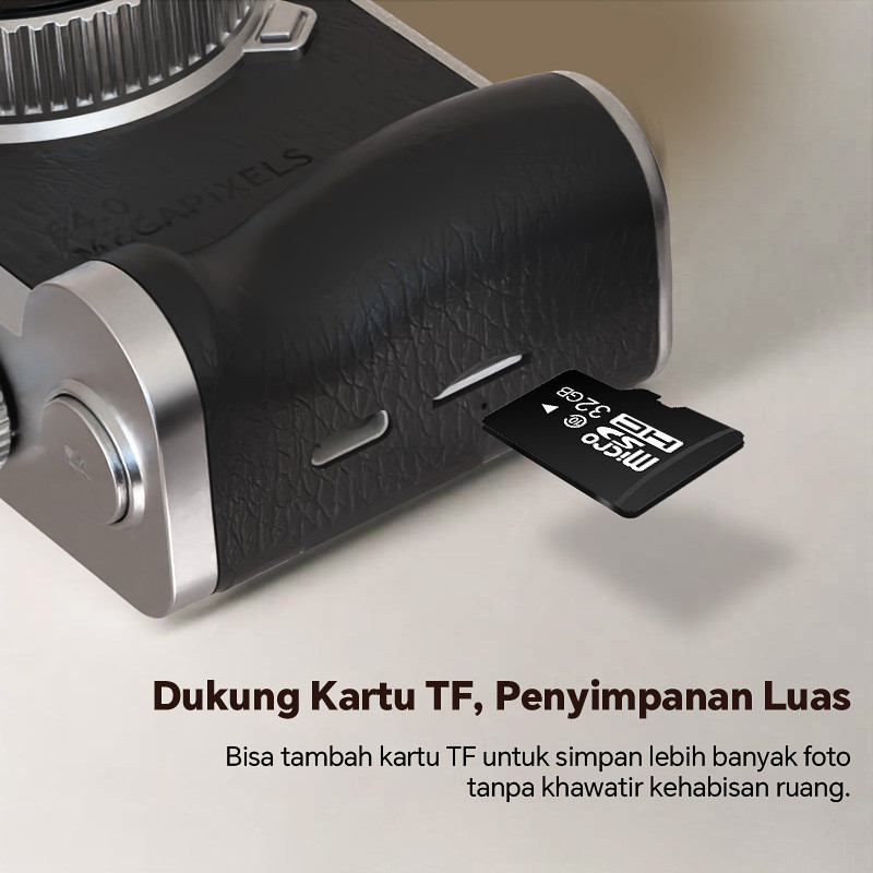 MISENI Front/Rear Dual Camera Digicam 64MP Kamera Digital Pocket Layar IPS 2.4 Inci Mini Pembesaran 16X Zoom