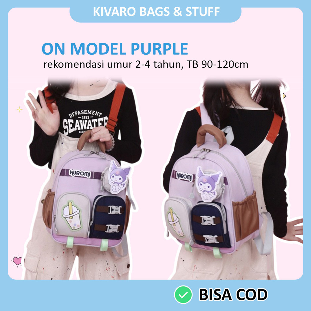 [NEW] Kivaro TwinPocket Tas Anak TK Paud Kuromi Kecil Perempuan Umur 2-4thn Uk.12 inch | 8809A
