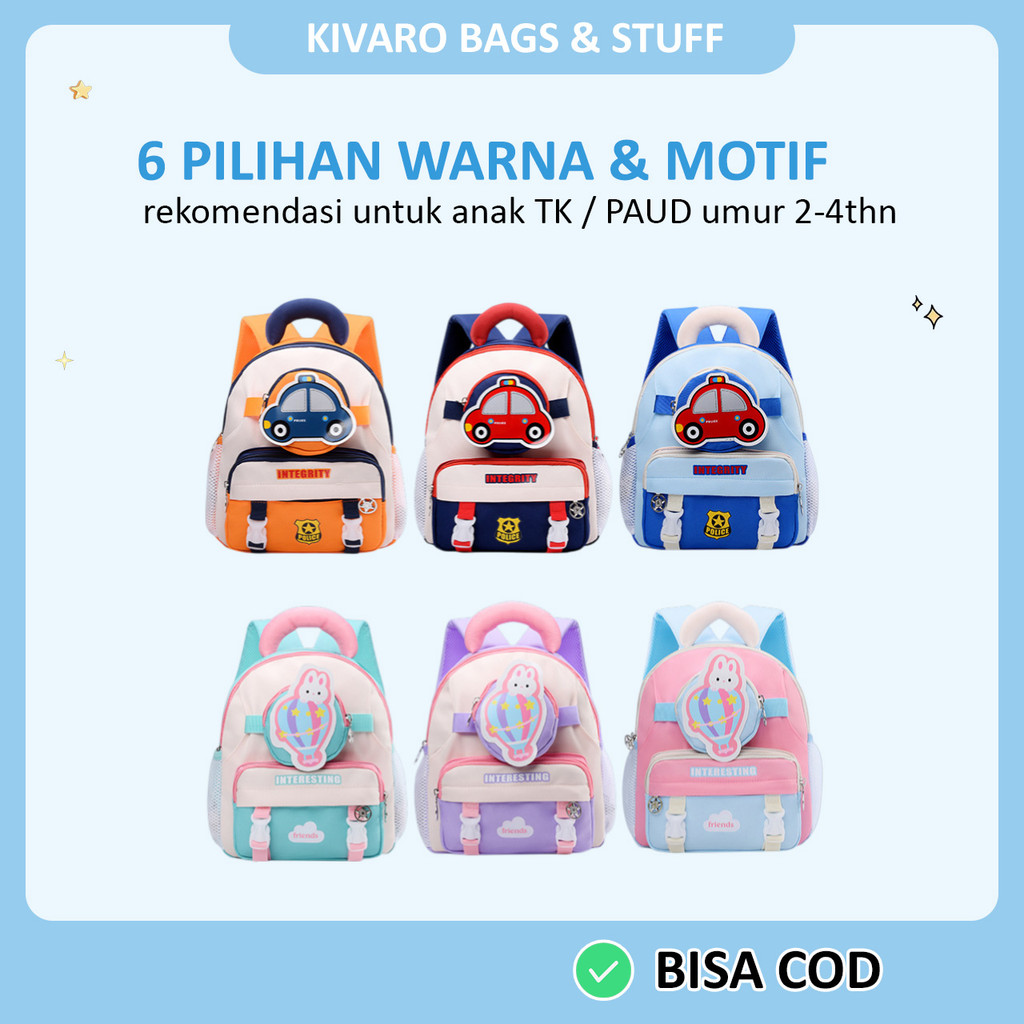 [HOT] Kivaro SpeedPatrol Series Tas Anak TK PAUD Motif Mobil Polisi Laki-laki Usia 2-4Thn 30cm | 628
