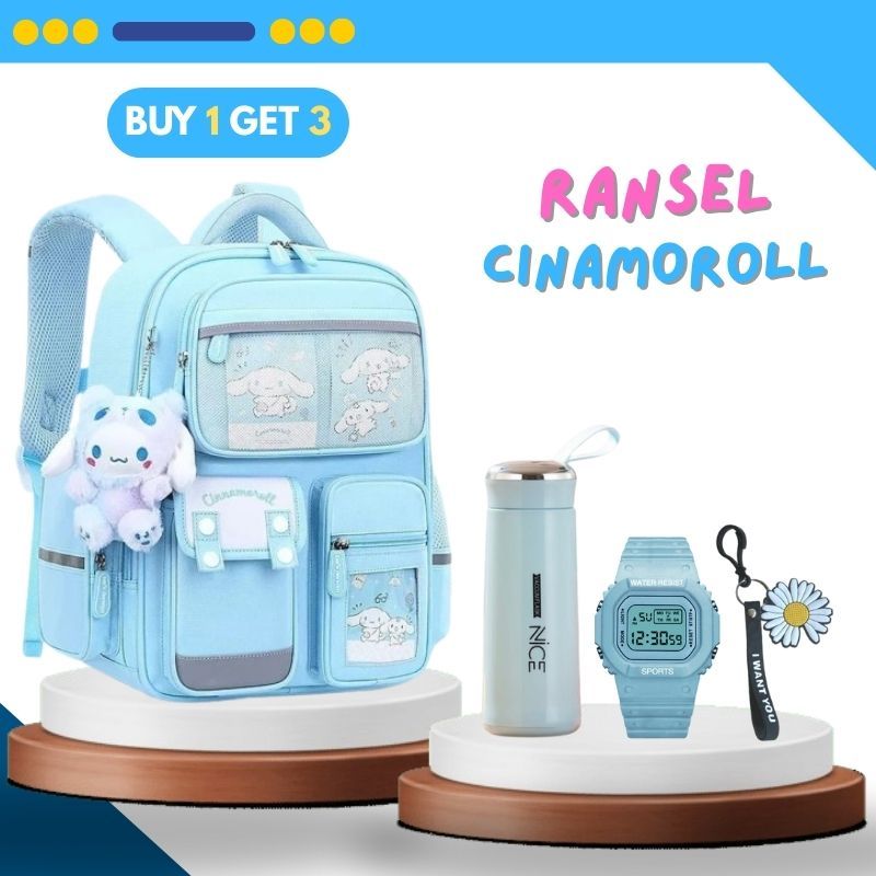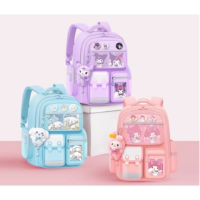 Ransel Sekolah Desain Sanrio Perempuan Kuromi Melody dan Cinamoroll Penuh Bonus