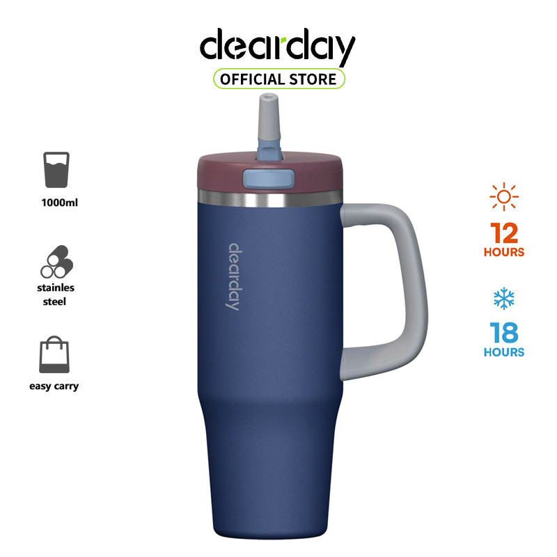 Dearday Tumbler Portable Stainless Coffee Cup 1000 ML D-229 Thermos Cup Vacuum Insulated Navy Blue