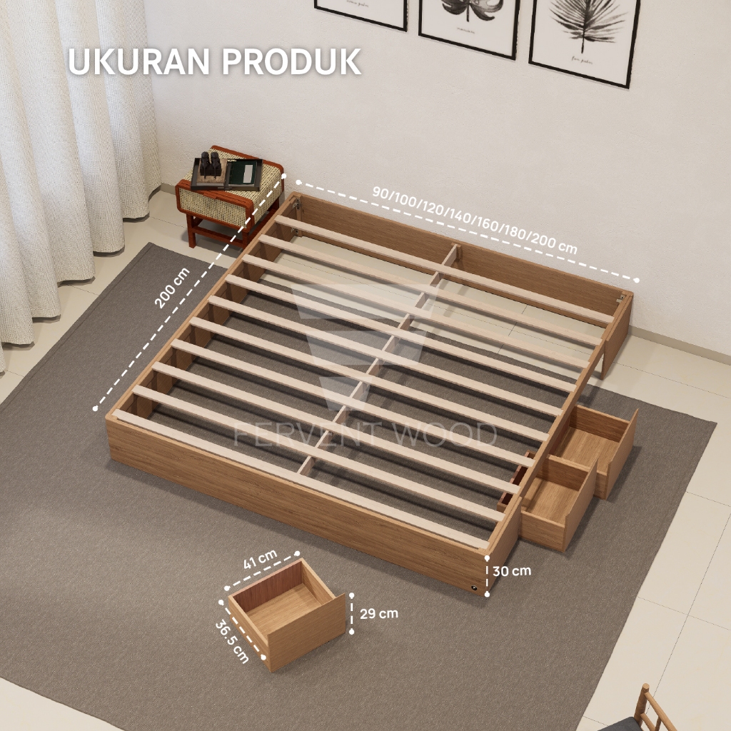 [Star] FERVENT WOOD Dipan Laci Kokoh Tempat Tidur Kasur Divan Kayu Solid Minimalis Pemasangan Mudah Kokoh