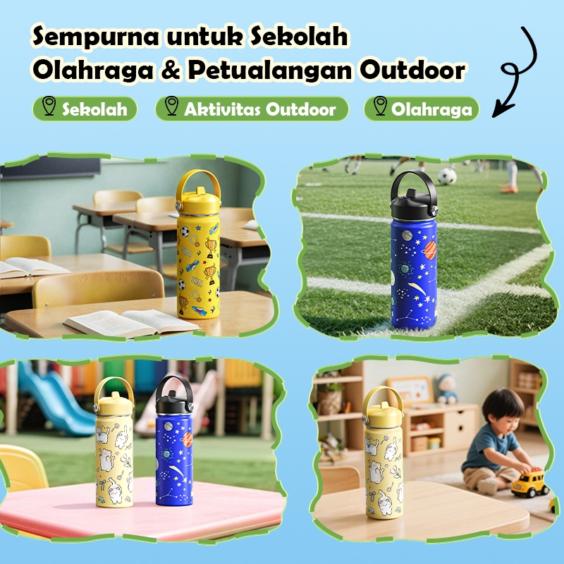 MODOFO Tumbler Anak 530ml/18oz Motif Kartun Lucu Baja Anti Karat - Tahan Panas/Dingin 24Jam