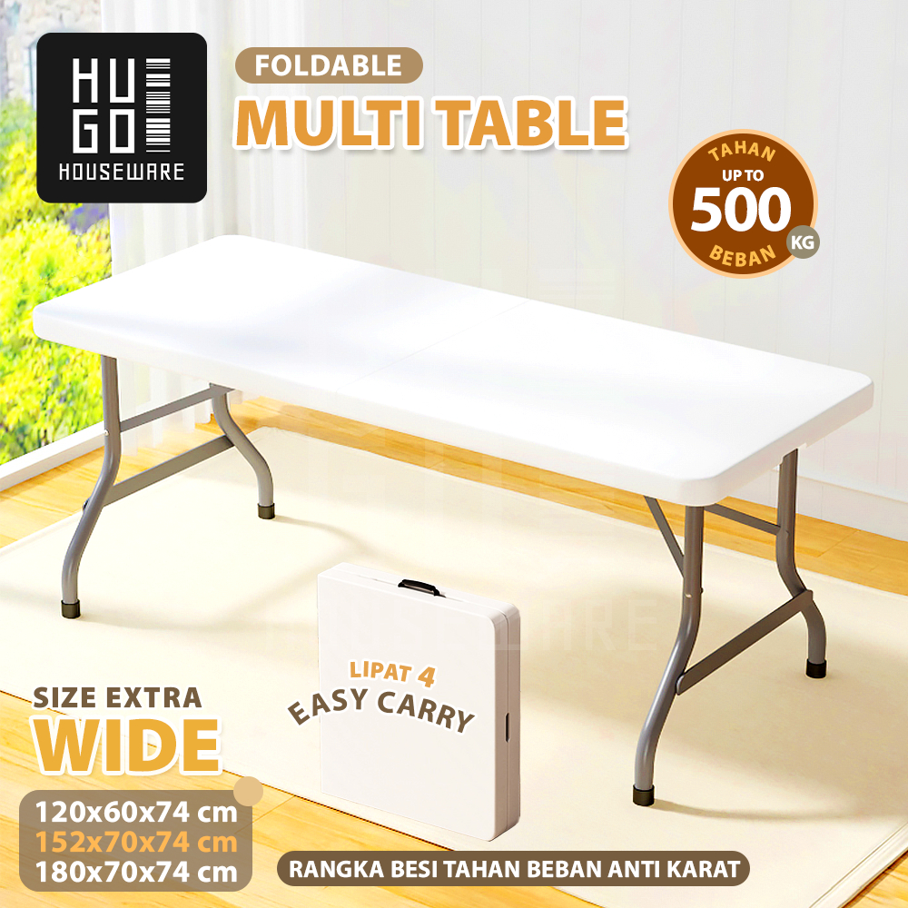 [Star] HUGO Meja Lipat Plastik Rangka Besi Kokoh Meja Lipat Jualan Outdoor Serbaguna Meja Makan Besar Tahan Beban 500kg