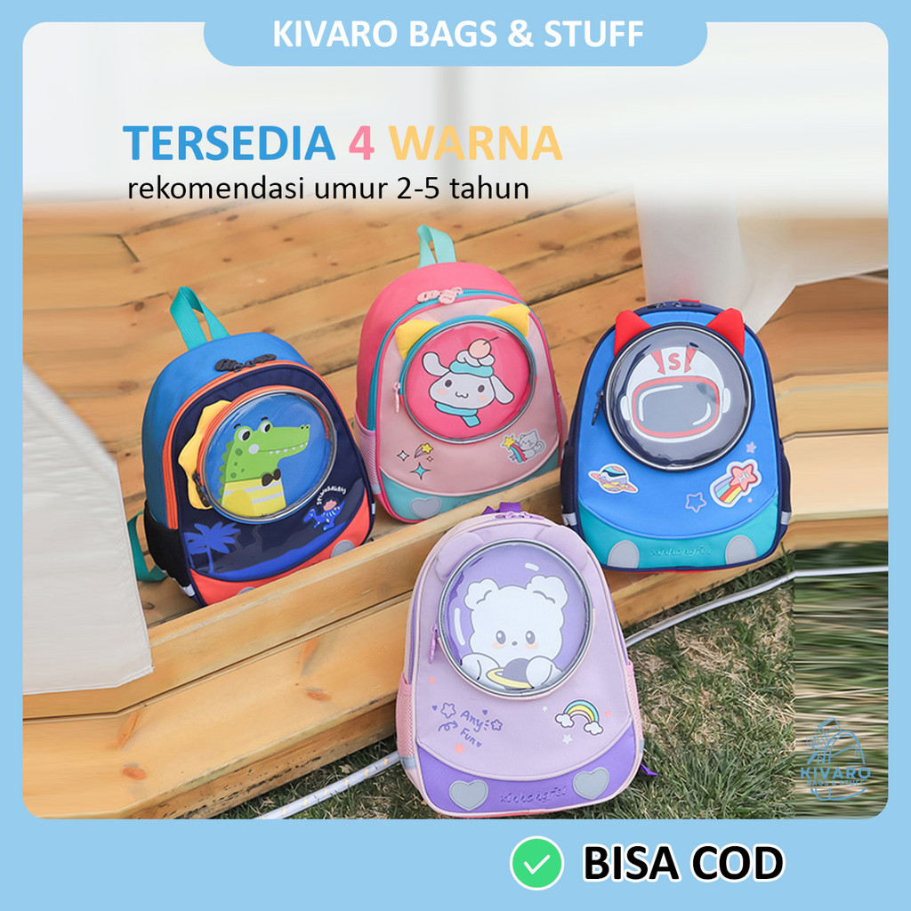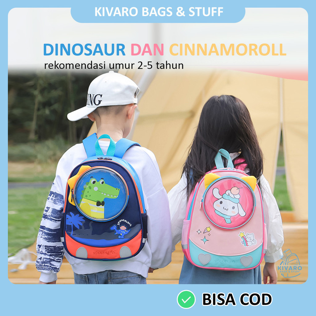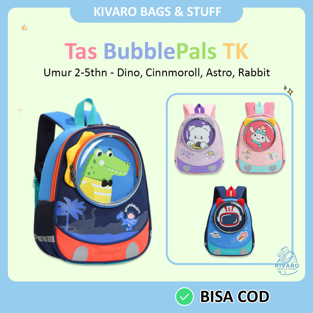 [NEW] Kivaro BubblePals Series Tas Sekolah Anak TK PAUD Usia 2-5 Thn 34 cm Karakter Dino & Bunny | 0322