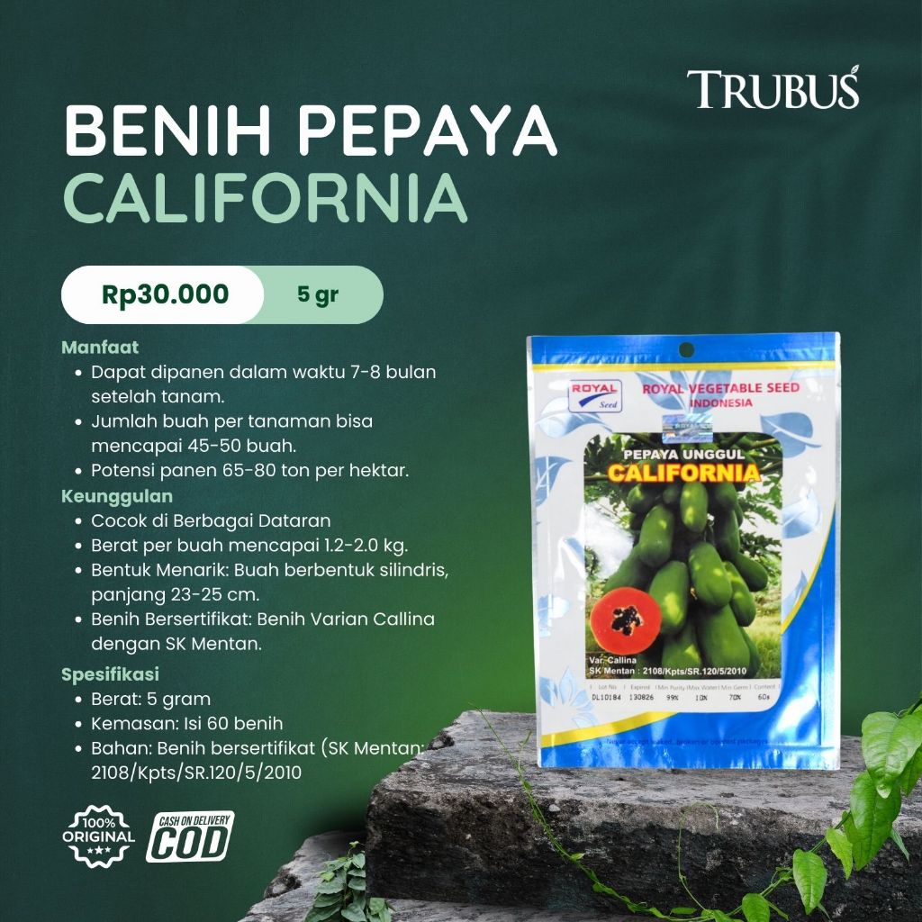 BENIH PEPAYA CALIFORNIA ROYAL SEED - TRUBUS GREEN