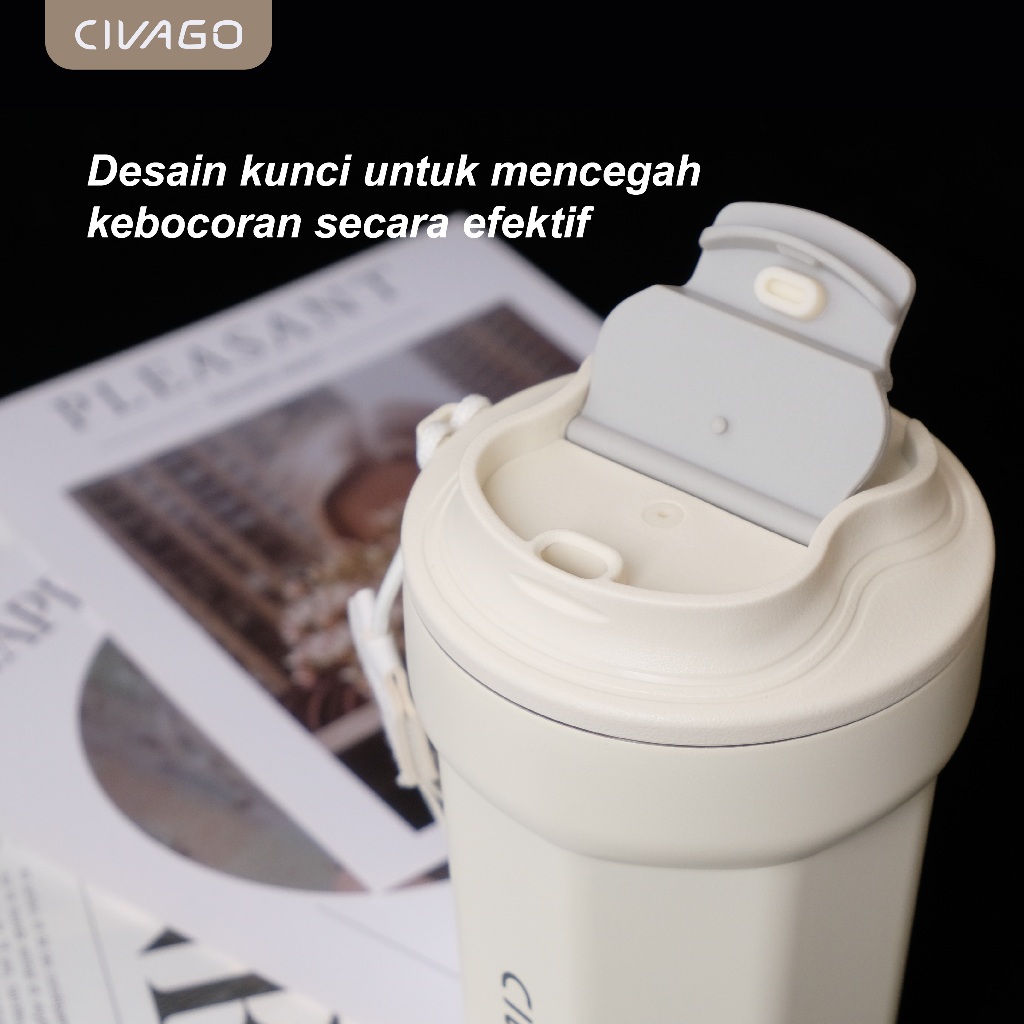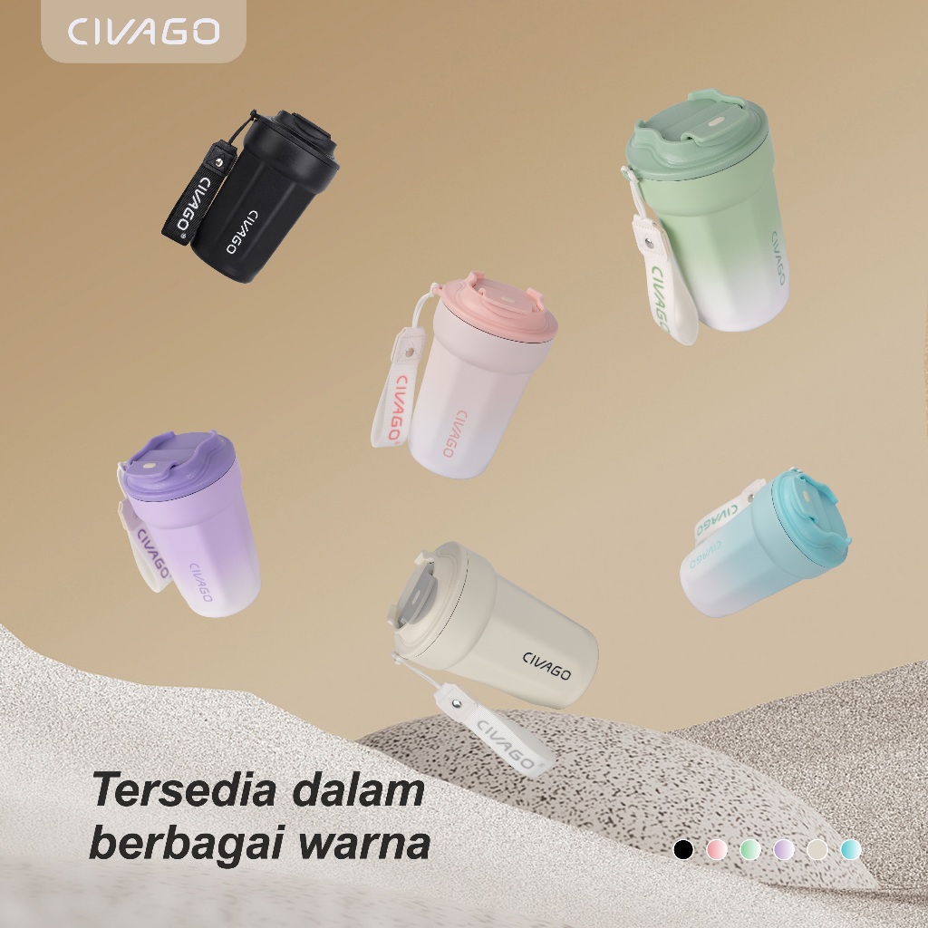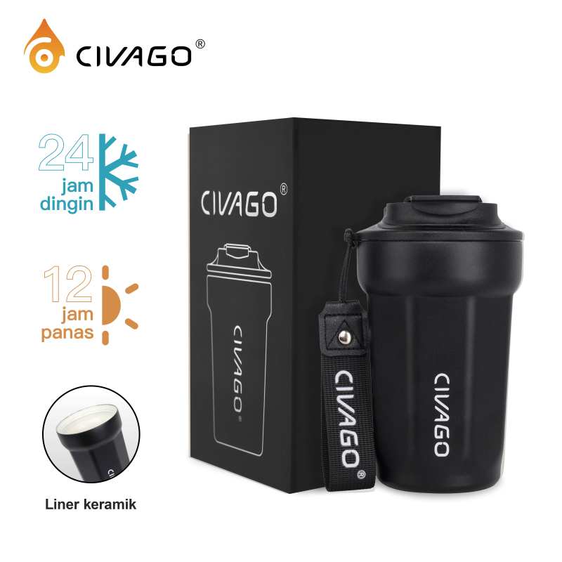 CIVAGO(13oz/385ml)Mug Kopi Stainless Steel dengan Lapisan Keramik dan Tutup Termos Vakum untuk Minuman Panas dan Dingin