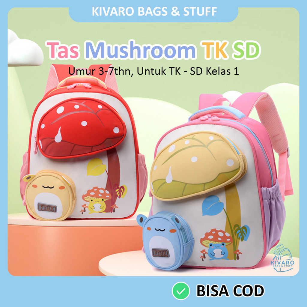 [TOP] Kivaro Mushroom Series Tas Anak TK SD Motif Jamur Perempuan Usia 3-7 Thn 35cm 6 Warna | 881