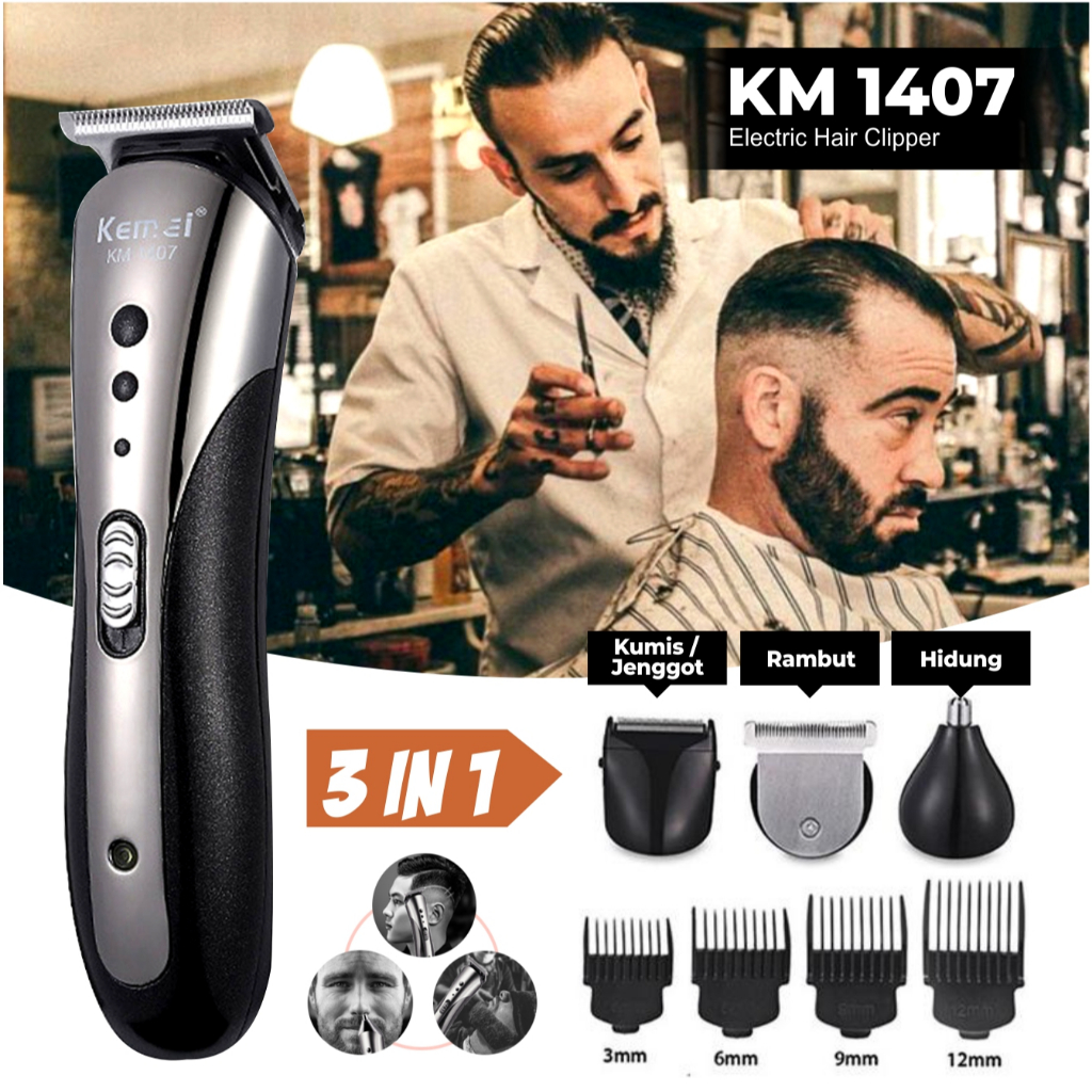 [Star] KEMEI - KM 1407 Alat Cukur Rambut Elektrik 3in1 Mesin Pemotong Kumis Jenggot Bulu Hidung
