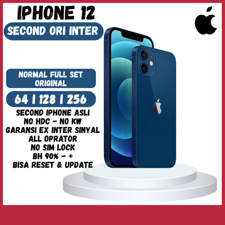 iPhone 12 Pro Max Mini original Second Inter 64GB 128GB 256GB Normal Fullset Mulus Hp iP 13 11 XR 15 Bekas Beacukai