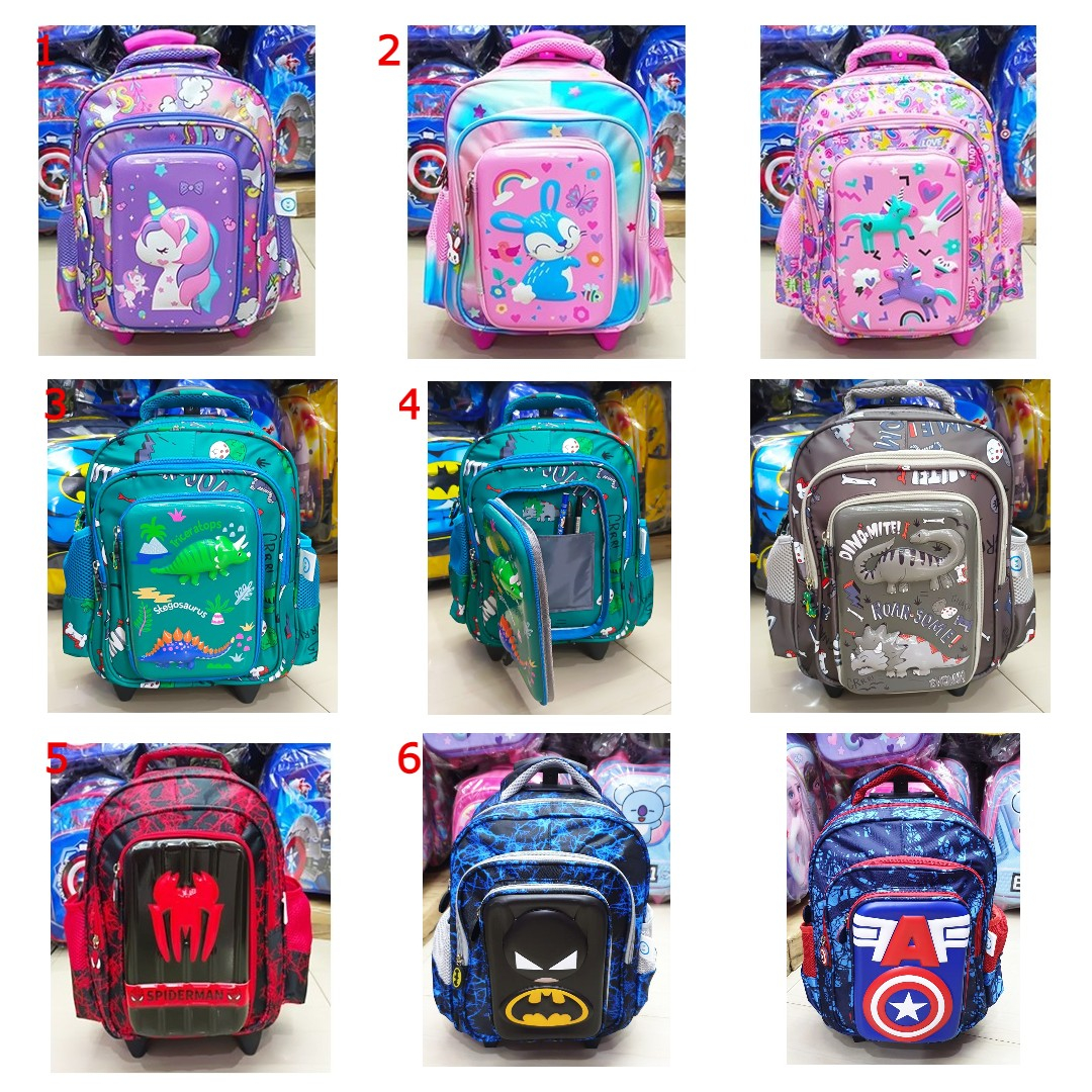 Tas Dorong Troli Anak PAUD-TK-SD Cewek Cowok FROZEN SUPERHERO DINO CUTE - IMPORT